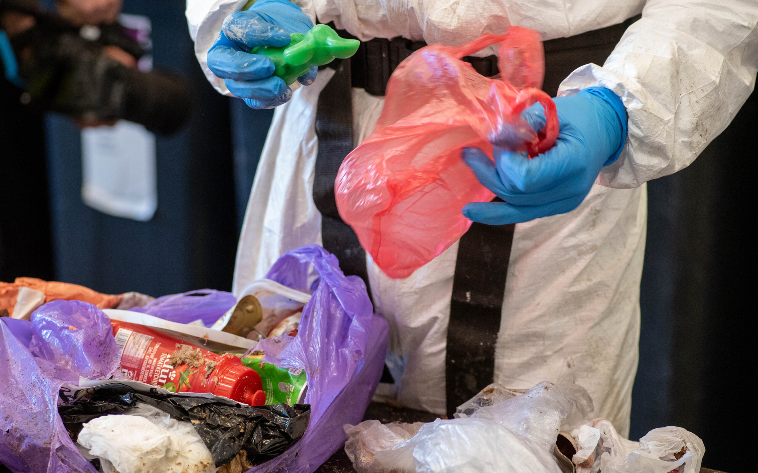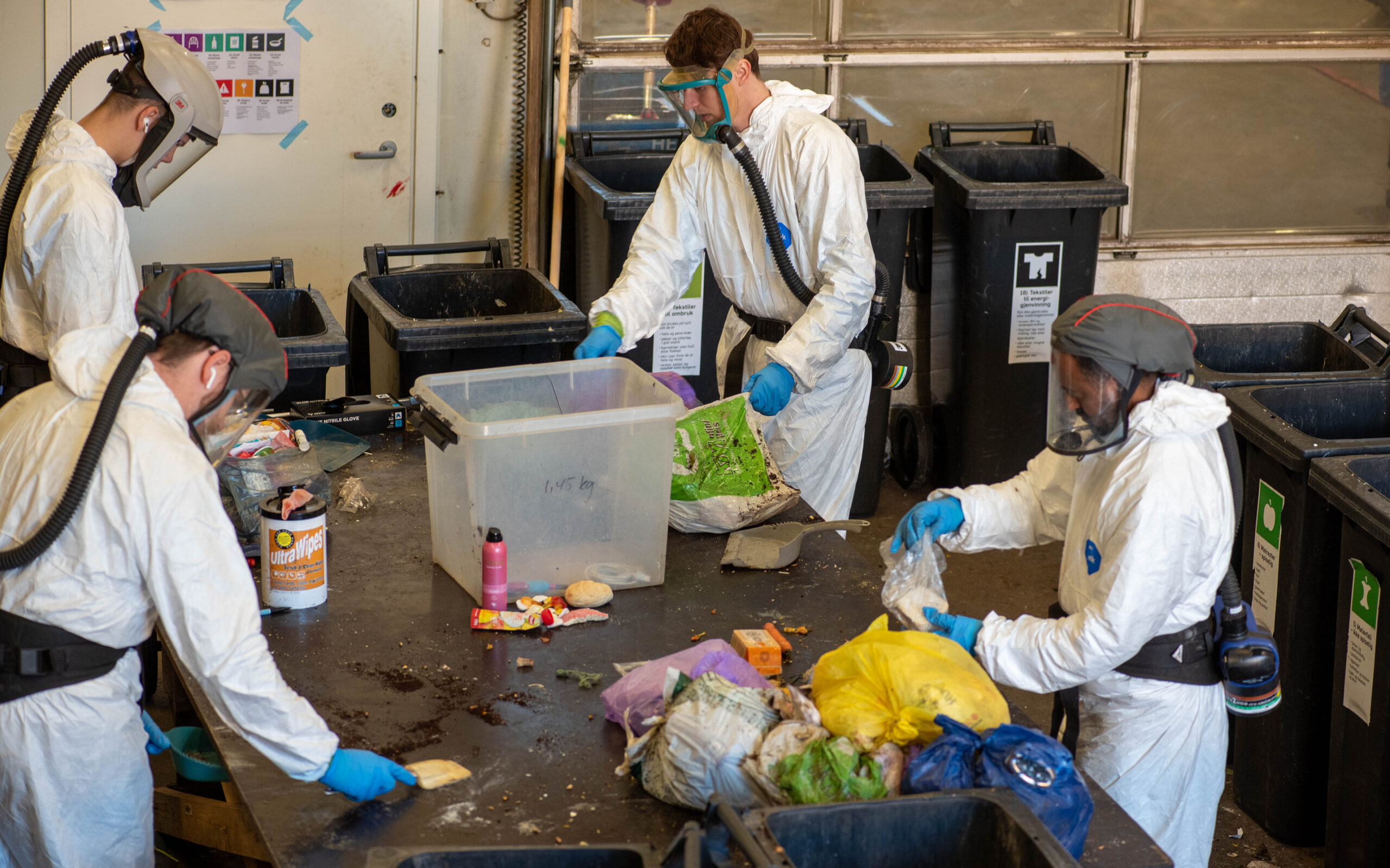 Sola skinner denne oktoberdagen på Støleheia avfallsanlegg i Vennesla. I verkstedhallen møter vi Kirsten Leidal, som er miljørådgiver i Avfall Sør. Bak henne står fire personer iført heldekkende hvite dresser og gassmasker. På gulvet ligger en enorm haug med restavfall. De fire dresskledde tar store spadetak med søppel og lemper det opp på et bord i midten av rommet. Deretter sorteres avfallet nøye, før det veies gram for gram. Leidal er prosjektleder for undersøkelsen.