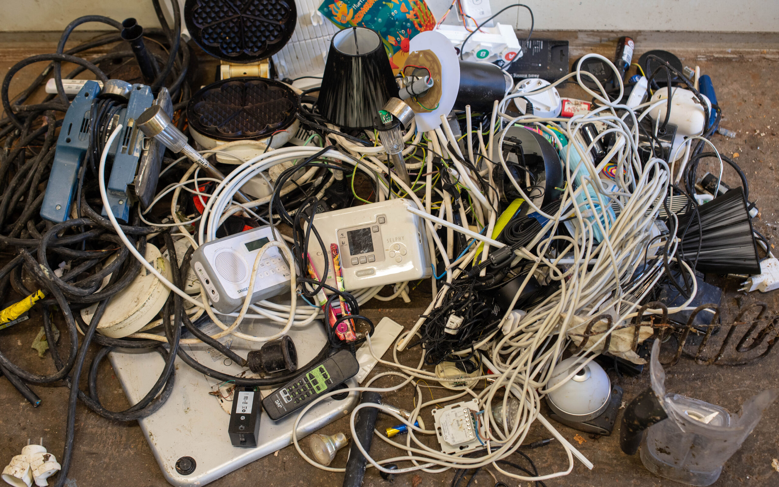 – Vi har funnet alt fra badevekter, kabler og skjøteledninger til slipemaskiner, mobiltelefoner og sykkelhjelmer med lys. Alt dette er elektroavfall som egentlig skal leveres til gjenvinningsstasjonen eller til forhandler.