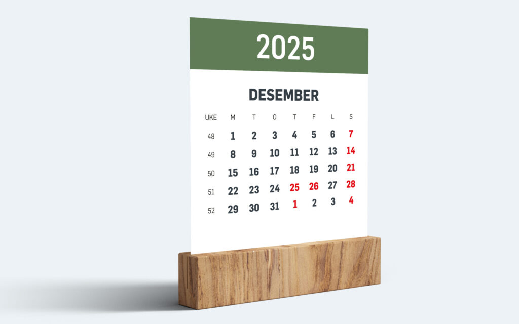 - Torsdag 25. desember tømmes tirsdag 23. desember